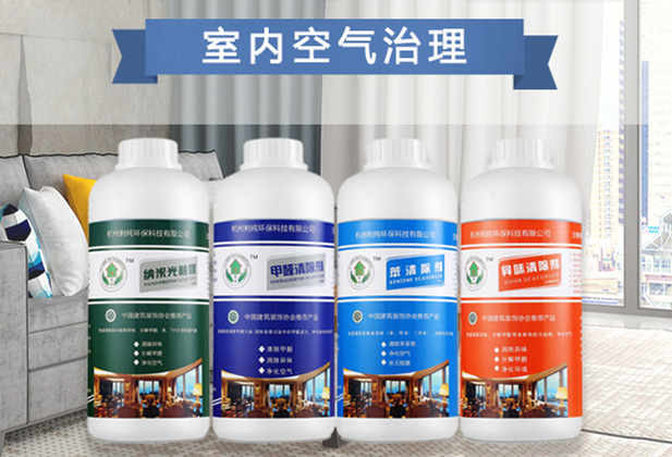 異味清除劑(生物酶)原理:利純異味清除劑產品原液中含有特種微生物的孢子,在有氧環境、溫度、濕適合的條件下,原液噴涂到基材表面后,其中的孢子會轉變為特種微生物,微生物有強大的繁殖能力,通過自身繁殖產生生物酶,并能分泌一定的活性酶,在微生物和酶的雙重作用下,能把基材中能揮發出來的甲醛、苯、氨、TVOC等有害氣 體物質分解為無毒無害的二氧化碳(CO2 )、水(H2 O)、二氧化氮(N02 )等 物質,能從污染源頭祛除醛類、苯類等有機污染物及異味,達到凈化空氣的目的。